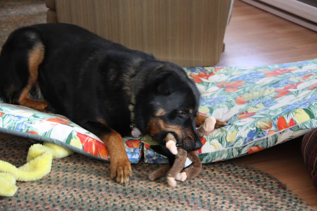 She lives wiv Mary and Doug, who mah Mama knows from the Cowichan SPCA, where they worked on the garage sale together. But Heidi was adopted from another of mah Mama's favorite animal places - Turtle Gardens Animal Rescue.